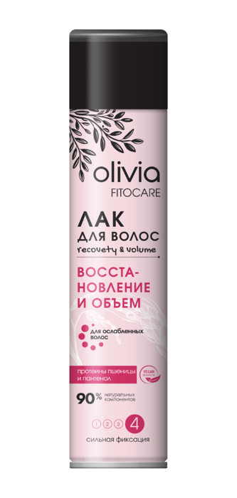 Лак для волос RECOVERY&VOLUME Восстановление и объём Olivia Fito Care с протеинами шелка и пантенолом, специально разработанный для ослабленных волос, придаёт волосам живой блеск и совершенную укладку. Лак подходит для фиксации локонов без склеивания. Волосы сохраняют форму в течение всего дня. Без эффекта утяжеления волос. Легко удаляется при расчесывании. Антистатический эффект. Защищает от влажности и ветра.