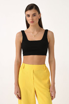Топ можно носить по-разному: V или U – образным вырезом вперед. Это позволяет комбинировать его с разной одеждой. Модель идеально дополняет бельевой стиль - прозрачные блузки и рубашки, пиджаки, кардиганы и куртки формата оверсайз. Необычная вафельная текстура выглядит оригинально.