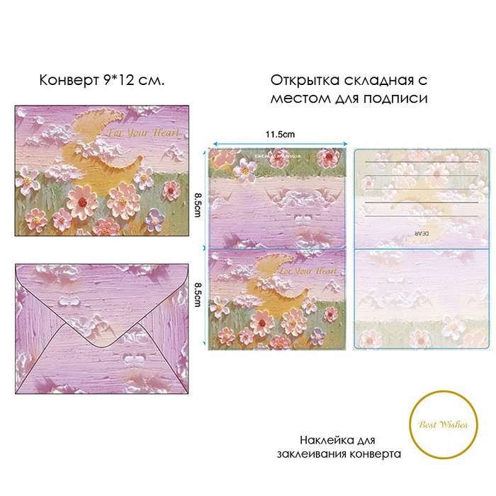 Размер конверта вместе с открыткой 9*12 см.