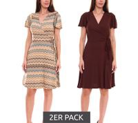 outlet46 2er Pack Laura Scott Damen Wickel-Kleid schicke Mini-Kleid mit Allover