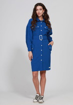 классическое женское платье-рубашка из тонкого атласа, платье макси с длинными рукавами 955549, светло-голубое