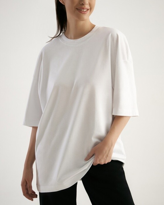 Футболка свободного силуэта. Горловина из рибаны.