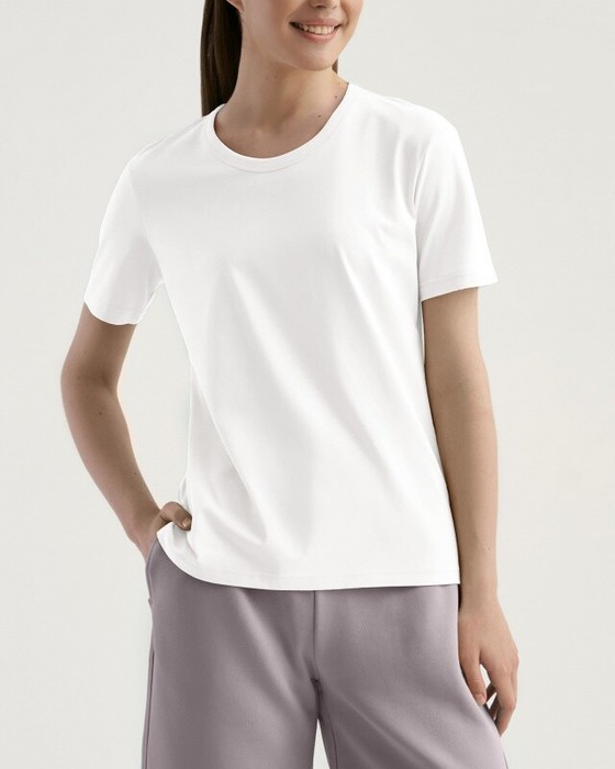 Женская футболка полуприлегающего силуэта. Горловина окантована.