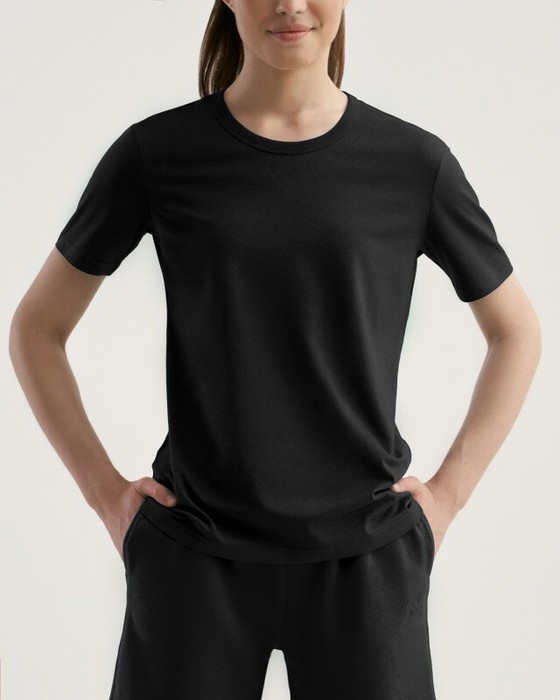 Женская футболка полуприлегающего силуэта. Горловина окантована.
