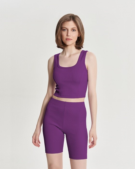 Майка из кашкорсе укороченная, облегающая с рельефами. Широкая бретель.