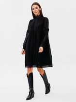 Платье средней длины из кашкорсе, облегающего силуэта, с широкой окантовкой пройм и горловины из рибаны.