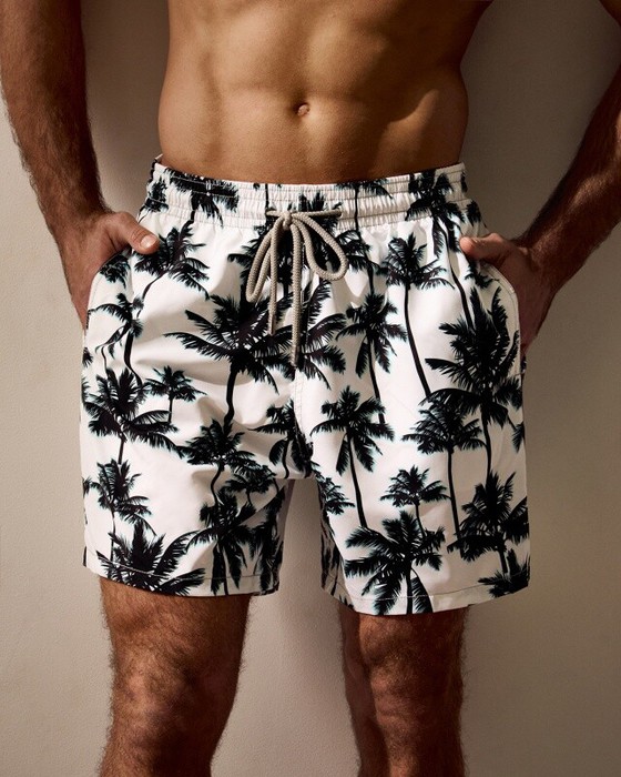 Плавательные шорты. Карманы в боковых швах. Задний карман с клапаном на правой задней половинке шорт. Пояс цельнокроенный, отстроченный, внутри с резинкой и шнурком.