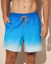 Плавательные шорты. Карманы в боковых швах. Задний карман с клапаном на правой задней половинке шорт. Пояс цельнокроенный, отстроченный, внутри с резинкой и шнурком.