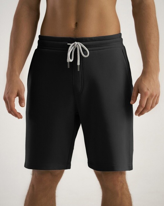 Мужские шорты с кокеткой.Пояс из двух частей, задняя часть из кашкорсе, отстрочен, внутри с резинкой и шнурком. Боковые карманы на передних деталях,1 накладной карман на правой задней детали шорт
