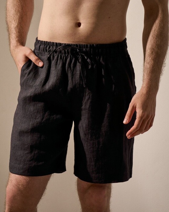 Шорты мужские из льна. Боковые и задние карманы. Пояс внутри с резинкой и шнурком