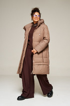 Утепленное стеганое пальто полуприлегающего силуэта-настоящий подарок для любителей классики. Изделие отрезное под линией груди с центральной застежкой на потайные кнопки. По низу рукава и по внутренней части воротника-стойки отделочная ткань светло-серого цвета. Низ рукава со шлицей на потайные кнопки. Утеплитель холкон (см.описание), плотность 100.