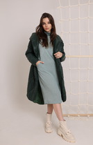 Пальто на синтепухе – новый модный фаворит современных женщин. И, что важно, на всех возрастных категориях пальто на синтепухе смотрится достойно. Синтепух (синтетический пух) – это самый лучший заменитель натурального пуха. Синтепух является современным, легким, упругим, мягким и объемным материалом. Благодаря эластичности синтепуховая одежда способна быстро восстановить свою первичную форму после стирки. Синтепуховые пальто сохраняют первозданный вид в течение длительного времени. Оригинальная стежка пальто-растянутый ромб подчеркивает фигуру наилучшим образом. Застежка смещенная на скрытую молнию, воротник-стойка со съемным капюшоном. Линия низа-фигурная. Длина изделия 91 см, длина рукава 65 см. Температурный режим до -10-15.