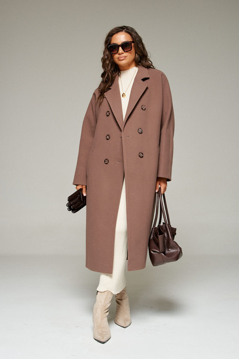 Пальто выполнено из шерстяной ткани, которая обеспечивает теплоизоляцию и защиту от ветра и влаги, подходит для межсезонья и теплой зимы. Двубортное, на подкладке. Изделие рассчитано на температурный режим от +10 до -5 градусов. Модель прямого силуэта, чуть расширенная к низу, покроя «летучая мышь»; предназначена для повседневного использования.