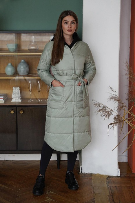 Элегантное стеганое пальто с закругленной линией низа,идеальный вариант для умеренно холодной погоды. Свободный силуэт и спущенная линия плеча,сделают вас эффектной и неповторимой. Удлинённый крой позволит легко комбинировать эту модель как с брюками, так и с платьями или юбками. Мягкий воротник-стойка защитит вас от холода и ветра. Изделие смотрится подчеркнуто женственно и изящно как с поясом так и без него. Длина по спинке - ок.112,длина рукава от горловины - ок. 73см. Рост 170 см. Р-ры 42-52 Состав: полиэстер 100%, утеплитель: Air Twin Light 100 г/m 2 Цвет:шалфей Цвет одежды может незначительно отличаться от оригинала.