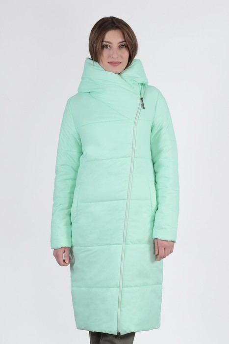 Модное, оригинальное , и в то же время очень простое пальто украсит гардероб любой девушки. Пальто с асимметричной застёжкой на витую молнию с двумя бегунками полуприлегающего силуэта с капюшоном и удобными прорезными карманами с листочками. Горизонтальные стежки формируют силуэт и обеспечивают прекрасную посадку пальто по фигуре. Длина по спинке -ок.105см, длина рукава-ок.65 см. Рост 170 см Р-ры: 42-52 Состав: полиэстер 100%, утеплитель: Air Twin Light 100 г/m 2 Цвет:мята Цвет одежды может незначительно отличаться от оригинала.