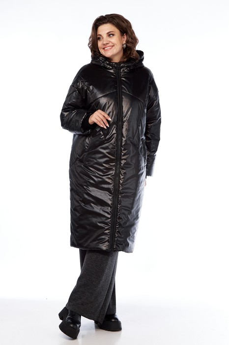 Пальто женское утепленное с центральной застежкой "молния", длиной до середины икры. Спинка выстегана фигурной стежкой. Перед с боковыми прорезными карманами "с листочкой" и фигурной стежкой. Рукав втачной одношовный со спущенной линией плеча. По низу рукава внутри трикотажный довяз. По рукаву так же фигурная стежка. Воротник-капюшон с центральной и боковыми частями и кулисой. В качестве утеплителя синтепон 200. Температурный режим до -10 градусов. Внешний вид фурнитуры может отличатсья от заявленного на фото. По низу изделия нет резинки и фиксаторов.