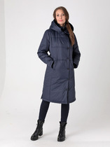Утепленный плащ прямого силуэта с легким заужением книзу. Застежка - на двухзамковую молнию, что позволяет при необходимости регулировать комфортность шага. Воротник - стойка, переходящая в капюшон. Две пары функциональных карманов: нижние  застегиваются на молнию, верхние - на кнопку. Есть внутренний кармашек  на молнии. Длину втачного рукава можно регулировать за счет отворота. Контрастная внутренняя отделка и фурнитура освежают и зрительно вытягивают силуэт демисезонного пальто.  Плащевая ткань имеет водоотталкивающую пропитку,  которая выдержит небольшой  дождь, снег и ветер. Хорошо зарекомендовавший себя утеплитель "Холлофайбер", плотностью 100гр/м, защитит от весенней прохлады.  Подкладка в изделии выполнена из ткани в мелкую полоску.  Утепленный плащ такой длины хорошо сочетается как с брюками, так и с юбкой или платьем, а с помощью обуви и аксессуаров Вы можете менять свой стиль.
