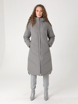Элегантное зимнее пальто средней длины прямого силуэта с легким А-образным расклешением, втачными рукавами и застежкой на двухзамковую молнию. Модель такого пальто подходит для девушек и женщин разной возрастной категории. Декоративные строчки красиво подчеркивают и "вытягивают" силуэт. Воротник - уютная стойка, переходящая в капюшон.Удобно расположенные карманы, застегиваются на молнию. Есть внутренний кармашек, тоже на молнии. Плащевая ткань, из которой выполнено изделие, имеет водоотталкивающую пропитку, выдерживающую небольшой  дождь, снег и ветер. Хорошо зарекомендовавший себя утеплитель " Холлофайбер", плотностью 300гр/м, защитит от холода. Подкладка в изделии выполнена из ткани в мелкую полоску.