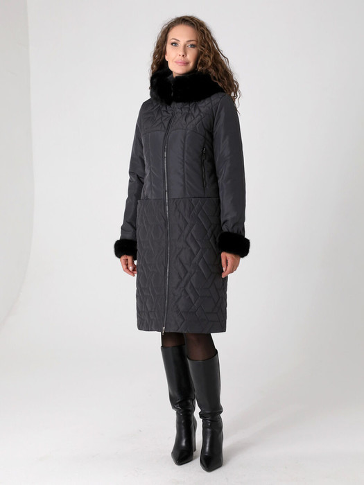 Элегантное зимнее пальто полуприлегающего силуэта средней длины подходит для девушек и женщин разной возрастной категории. Застежка - на двухзамковую тесьму молнию с внутренней ветрозащитной планкой. Отворот втачного рукава и отворот несъемного капюшона выполнены из шелковистого искусственного меха "под кролика"; опушка не отстегивается, но очень хорошо стирается и сохраняет свой красивый внешний вид! Две пары удобных карманов: верхние расположены в рельефных швах и застегиваются на молнию, нижние - в подрезе. В подкладке изделия имеется нагрудный потайной карман на молнии. Плащевая ткань, из которой выполнено изделие, имеет водоотталкивающую пропитку, выдерживающую небольшой дождь, снег и ветер. Хорошо зарекомендовавший себя утеплитель " Холлофайбер", плотностью 300гр/м, защитит от холода. Подкладка в изделии выполнена из ткани в мелкую полоску.