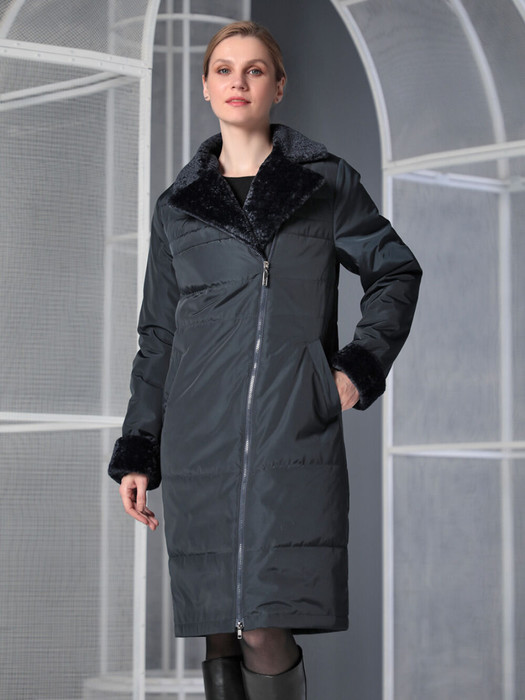 Демисезонное пальто средней длины прямого силуэта  подходит для женщин и девушек любого возраста. Ассиметричная застежка на двухзамковую молнию позволяет расстегнуть пальто как сверху, так и снизу, что актуально для корректировки ширины шага и при  подъеме по лестнице.  Удобно расположенные прорезные карманы  застегиваются на кнопку. Низ втачного рукава и воротник "английского" типа с лацканами выполнены из мягкого эко-меха, который хорошо стирается на рекомендованном режиме и не меняет свой внешний вид после высыхания. Плащевая ткань имеет водоотталкивающую пропитку, которая выдержит небольшой осенний дождь или снег. Хорошо зарекомендовавший себя утеплитель "Холлофайбер", плотностью 150 гр/м, защитит от холода и ветра. Подкладка в изделии - в мелкую полоску. Выбирайте понравившийся цвет, добавьте  аксессуары и наслаждайтесь стильной и комфортной осенью!