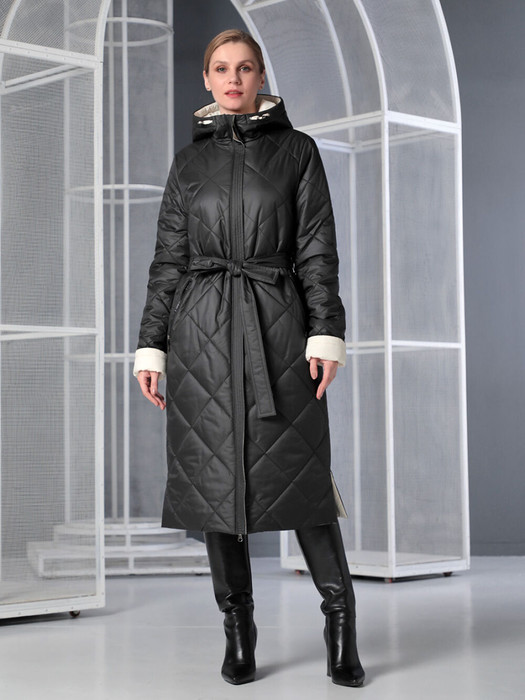 Стильное двухстороннее пальто прямого силуэта с застежкой на двухзамковую молнию,  которая позволяет расстегнуть пальто как сверху, так и снизу, регулируя тем самым ширину шага по необходимости. Воротник - стойка, переходящая в регулируемый капюшон. В варианте "стеганого" верха прорезные карманы застегиваются на молнию, в случае "гладкой" стороны -  карманы накладные. При желании линию талии можно подчеркнуть съемным поясом. Длина втачного рукава корректируется отворотом. Модель такого демисезонного пальто подходит для девушек и женщин разной возрастной категории, оно хорошо садится на любую фигуру. Плащевая ткань, из которой выполнено пальто, имеет водоотталкивающую пропитку, выдерживающую небольшой  дождь, снег и ветер. Хорошо зарекомендовавший себя утеплитель "Холлофайбер", плотностью 250гр/м, защитит от холода. Выбирайте понравившееся сочетание цветов, меняйте аксессуары и обувь, и это пальто станет любимой вещью в Вашем гардеробе! Пусть осень будет не только комфортной, но и стильной!
