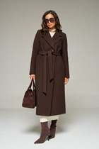 Пальто женское демисезонное прямого силуэта, на подкладке, длиной ниже колена, однобортное. На переде застежка по борту и воротнику-стойке на пришивные кнопки, карманы-клапан с двумя обтачками. В нижней части среднего шва спинки-шлица. Рукав втачной со спущенный плечом, в нижней части пата, вдета в шлевку.