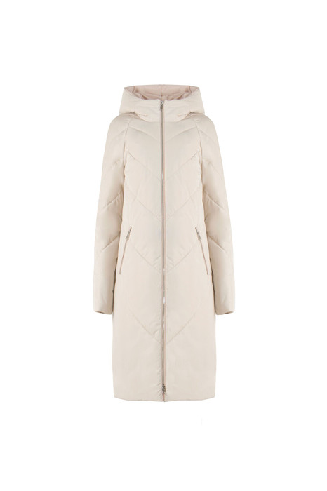 Пальто женское плащевое утепленное, стеганное на утеплителе ISOSOFT 250гр. прямого силуэта, на подкладке, с капюшоном, длиной ниже колена. Застежка на молнию. Перед с наклонными карманами, застегивающиеся на молнию. По борту и карману отделочный кант. Рукав втачной, двухшовный.