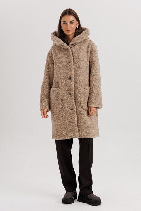 Сегодня на повестке дня – модное пальто! Поскольку половина золотой осени почти прошла, актуальность пальто достигает своих вершин. Casual в виде однобортного пальто выше колен, стильный oversize, в модели кокон, трендовый «Teddy bear». Это пальто элегантно и лаконично, нет слишком замысловатых форм и броского декора. Свободный силуэт со слегка заниженной линией плеча, рубашечный покрой, застежка центральная на петли и пуговицы и необычный капюшон-воротник. На полочке наклонно расположены накладные карманы. Рукав с широкой подгибкой, которая может быть использована как отложенная манжета. Длина пальто около 92см, длина рукава с плечом около 73см.