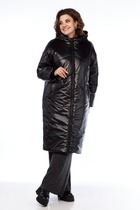 Пальто утепленное, с центральной застежкой на молнию, с высоким воротником- стойкой, планкой, застегивающейся на кнопки. На полочках расположены прорезные карманы с листочками. Рукав втачной, с отрезной манжетой. Манжета присборена на резинку. Плечо спущенное. Пальто со съемным поясом.