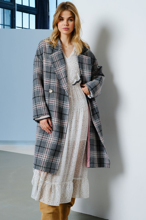 Пальто Lokka 1568С серый+черный+белый/клетка