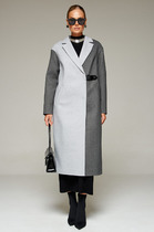 Пальто-паркет из искусственного меха с контрастной талией