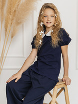 Школьная блузка прямого силуэта для девочки. Преобладающий в составе ткани хлопок делает эту модель мягкой, дышащей и комфортной для ребёнка. Благодаря полиэстеру изделие сохраняет форму и превосходный внешний вид. На спинке кокетка с защипом - свобода движения, комфорт в течение дня. По переду под кокеткой имитация кармана в виде декоративного клапана – актуально и стильно. Воротник украшают декоративные пуговицы — оригинально. Практичная и универсальная модель благодаря лаконичному дизайну великолепно сочетается с различными брюками и юбками. Отличный вариант детской блузки для школы.