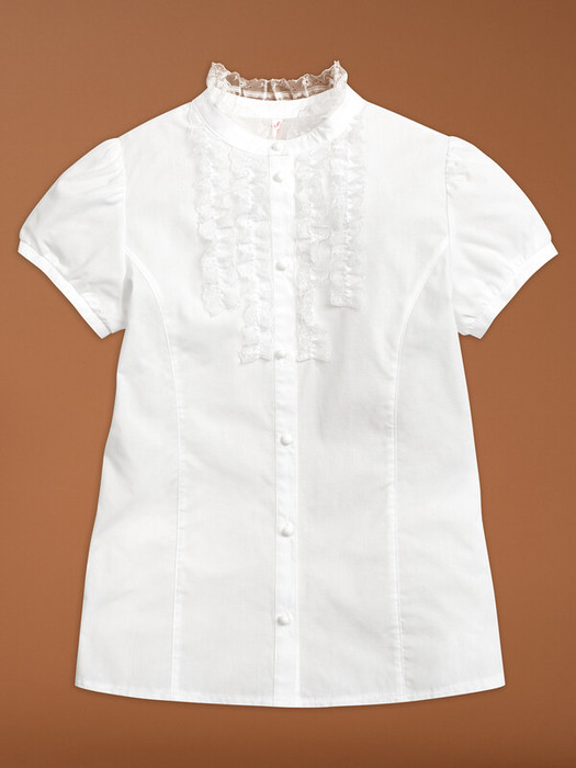 Рубашка с коротким рукавом отличный вариант демисезонной моды. Планка на пуговицах и воротник-стойка декорированы нежным воздушным кружевом, которое деликатно обрамляет и подсвечивает юное личико. Рубашка выполнена из приятного на ощупь хлопкового материала, позволяющего коже дышать. Полиэстер в составе обеспечивает пластичность, износостойкость и легкий уход за изделием.