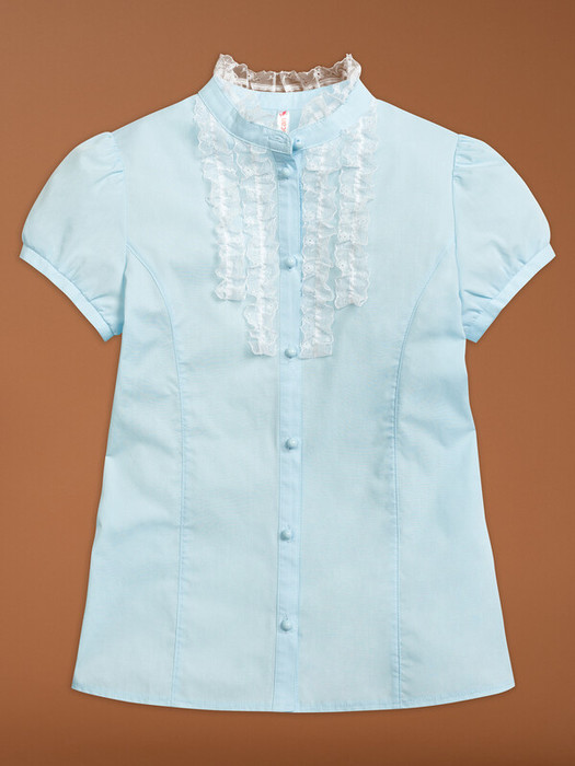 Рубашка с коротким рукавом отличный вариант демисезонной моды. Планка на пуговицах и воротник-стойка декорированы нежным воздушным кружевом, которое деликатно обрамляет и подсвечивает юное личико. Рубашка выполнена из приятного на ощупь хлопкового материала, позволяющего коже дышать. Полиэстер в составе обеспечивает пластичность, износостойкость и легкий уход за изделием.