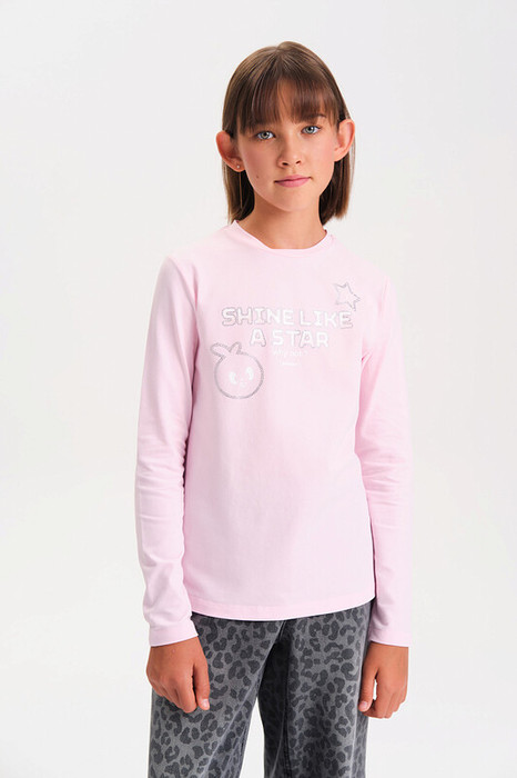 Мягкий и уютный лонгслив для девочки в нежно-розовом цвете — идеальный выбор на каждый день и для особых случаев. Выполнен из комфортного трикотажа, приятного к телу, хорошо тянется и сохраняет форму.