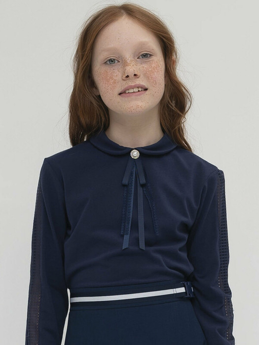 Эластичное кружево по рукаву, круглый воротник с бантом из репсовых и кружевных лент, закрепленный пуговицей с жемчужиной и стразами стильные фишки этой модели. Удобная застёжка сзади воротника позволит легко надеть джемпер и не испортить причёску.