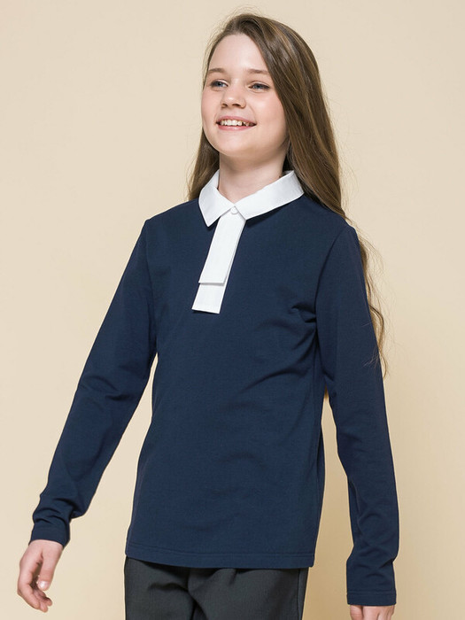 Школьный трикотажный джемпер прилегающего силуэта для девочки. В составе ткани преобладает хлопок — изделие мягкое, дышащее и приятное на ощупь. Эластан помогает сохранять форму и после многочисленных стирок. В джемпере комфортно в течение всего дня, ничего не давит, не колет, не сковывает движения.  Блузку украшают белый воротничок и декоративно сложенный галстук из швейной ткани с пуговицей в тон — изюминка этой модели. Он позволяет создавать элегантные образы с пиджаком, жилетом, сарафаном. Модель застёгивается сзади на пуговицу с петлёй из резинки — ребёнку удобно её застёгивать и расстёгивать. Универсальный вариант школьной одежды — подойдёт как для повседневной носки, так и для более торжественного случая.