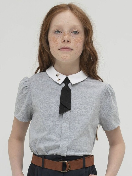Отложной воротник и вертикальная складка спереди придают образу строгости. А присборенные рукава добавляют романтичности.