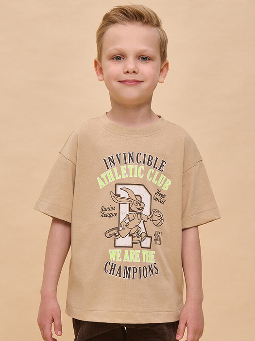 Детская футболка для мальчика. Комфортная майка свободного объёма со спущенным плечом не будет стеснять движений ребёнка. Вырез горловины обработан эластичной рибаной (ткань в рубчик) — она прекрасно держит форму, не растягивается, при этом ребёнку удобно надевать и снимать футболку. Изделие неприхотливо в уходе. Футболка детская с принтом в актуальном университетском стиле по переду. Надписи переводятся: «непобедимы клуб атлетики, мы чемпионы», «сохраняй настрой», «младшая лига». Принт эластичный и прочный, не боится частых стирок. В составе ткани 100% хлопка — майка мягкая, дышащая, приятная на ощупь. Футболка для мальчиков выполнена в универсальном цвете, её легко комбинировать с различными брюками, шортами. Детские футболки с принтом подходят как для маленьких мальчиков, так и для подростков. Оверсайз-футболка для мальчика подходит для любого времени года, её можно носить как летом, так и в холодное время года в качестве среднего слоя одежды. Помните о правильном уходе за изделием: рекомендуется стирать при температуре не выше 30 °C, без предварительного замачивания, с изнанки. Это поможет сохранить качество и цвет футболки на длительное время.