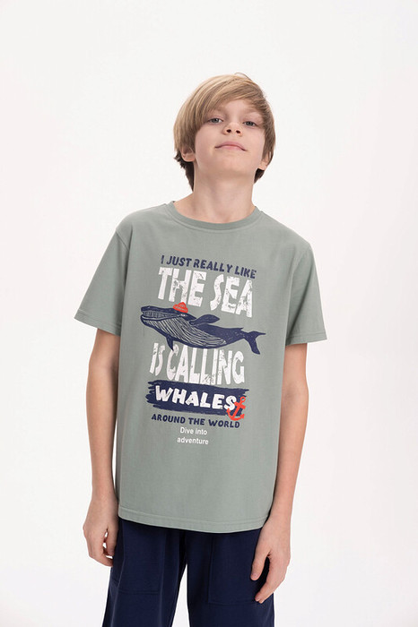 Футболка для мальчика прямого кроя - это идеальный выбор для активного ребенка. Вырез горловины обработан эластичной тканью — она прекрасно держит форму, не растягивается, при этом ребёнку удобно надевать и снимать футболку. По переду принт в морском стиле с надписью. Перевод надписи "I just really like the sea is calling" - мне просто очень нравится что море зовёт, "whales around the world" - киты по всему миру, "dive into adventure" - погрузись в приключение. Спортивная футболка подходит как для подростков так и для малышей в детский сад. Подходит для любого времени года.