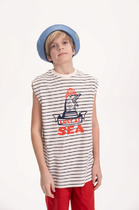 Футболка для мальчика прямого кроя - это идеальный выбор для активного ребенка. Вырез горловины обработан эластичной тканью — она прекрасно держит форму, не растягивается, при этом ребёнку удобно надевать и снимать футболку. Футболка украшена принтом в морском стиле и надписями. Перевод надписей "All hands on deck!!!" - все на палубу!!! Спортивная футболка подходит как для подростков так и для малышей в детский сад. Подходит для любого времени года.
