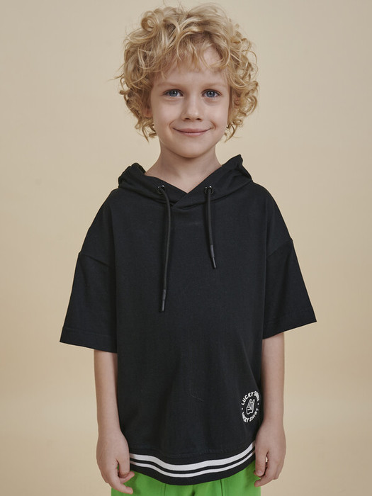 Модель представлена в черном цвете. Черная футболка для мальчика с капюшоном – стильный вариант на любой выход, по переду нюансная надписью "Catch your vibe" – перевод "Поймай свой вайб". Изделие привлекает интересным дизайном. Свободная футболка для мальчика подростковая рассчитана на возраст садика и школы. Размерная линейка: 1 (86); 2 (92); 3 (98); 4 (104); 5 (110); 6 (116); 7 (122); 8 (128); 9 (134); 10 (140); 11 (146).