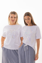 Женская футболка оверсайз для весны и лета. Натуральный хлопок и 5% эластана в составе – тело дышит, ткань меньше мнется и дольше сохраняет аккуратный внешний вид. Перепад длины понизу, разрезы по бокам для максимальной свободы движений и ощущения легкости. Принты спереди и на спинке настраивают на позитив и лето. Модель идеальна на каждый день, подходит для спортивного стиля и активного отдыха.
