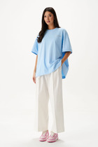 Женская футболка с принтом. Футболка оверсайз со спущенным плечом подарит вам комфорт и свободу движения. Джемпер такого силуэта скрывает недостатки фигуры и подчёркивает достоинства. Майка с удлинёнными широкими рукавами — один из актуальных модных трендов сезона. Она неприхотлива в уходе. Трикотажная футболка украшена трендовым принтом в университетском стиле по переду, надписи переводится: "наслаждайтесь временем, проведённым вместе", "досуг, комфорт", "выходные на объединяют". Принт качественный и стойкий — без проблем переносит многочисленные стирки. В составе ткани преобладает высококачественный хлопок — футболка мягкая, приятная на ощупь и позволяет коже дышать. Эластан помогает изделию надолго сохранить первозданную форму. Джемпер представлен в следующих актуальных цветах: чёрный, голубой, синий, жёлтый, белый, зелёный, бежевый. Размерная линейка: XS (42); S (44); M (46); L (48); XL (50). Модель идеальна и для женщин, и для девушек, и для девочек-подростков. Базовая футболка оверсайз универсальна, отлично подходит для работы, учёбы, спорта, прогулок, отдыха, а также для дома и сна. Хлопковая футболка легко сочетается с различными брюками и шортами. Её можно носить летом, зимой и в демисезон (осенью и весной). Модная футболка— это прекрасный подарок сестре, подруге или маме на любой праздник. Выбирайте нужный размер по таблице размеров на фото. Цвет товара на экране вашего устройства может отличаться от цвета изделия вживую.