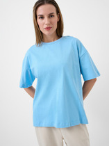 Футболка однотонная женская. Комфортная мягкая майка небольшого объёма станет отличным дополнением вашего повседневного гардероба. Модель выполнена из эластичной рибаны (ткань в рубчик), вырез горловины также обработан рибаной — она прекрасно держит форму, не растягивается, при этом футболку удобно надевать и снимать. Базовая футболка с рукавом длиной до локтя — актуальный тренд сезона. Изделие неприхотливо в уходе. Модель лаконичного дизайна, без принта. В составе ткани преобладают высококачественный хлопок и  вискоза — майка мягкая, дышащая, приятная на ощупь. Эластан помогает сохранить первоначальную форму в течение длительного времени. Однотонная футболка выполнена в универсальных цветах, её легко комбинировать с различными брюками, шортами, юбками. Футболка женская без принта — базовый элемент гардероба, пригодится в любой ситуации. Однотонная футболка женская подходит для любого времени года, её можно носить как летом, так и в холодное время года в качестве среднего слоя одежды, а также на спорт. Помните о правильном уходе за изделием: рекомендуется стирать при температуре не выше 30 °C, без предварительного замачивания, с изнанки. Это поможет сохранить качество и цвет футболки на длительное время.