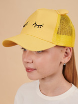 Милая и забавная детская бейсболка. Хлопковая кепка бейсболка — один из важнейших элементов детского летнего гардероба. Сзади предусмотрена застёжка на липучку (велькро). Задние клинья кепки выполнены из тонкой сетки, что обеспечивает вентиляцию и комфорт при носке. Под передним клином подкладка из 100% мягкого высококачественного хлопка. Модель однотонная, декорирована объёмными ушками из основной ткани и силиконовым объёмным принтом в виде закрытых глазок с ресничками. Размерная линейка: 48-50, 51-52, 53-54. Бейсболка детская представлена в следующих цветах: чёрный, жёлтый, розовый, бежевый. Такая кепка подходит детям дошкольного и младшего школьного возраста, а также подросткам. Бейсболка незаменима для пляжа, дачи, похода, прогулок, отдыха. Кепка детская летняя станет отличным дополнением гардероба ребёнка. Хорошо сочетается с любой одеждой. Модная кепка — замечательный подарок дочке, сыну, внучке или внуку на любой праздник. Выбирайте нужный размер по таблице размеров на фото. Цвет товара на экране вашего устройства может отличаться от цвета изделия вживую.