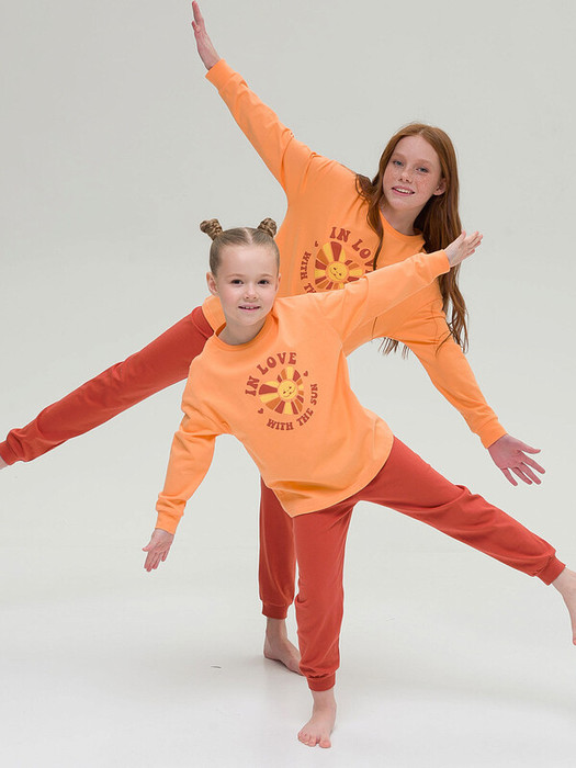 Комплект для девочек: объемный джемпер с широким свободным рукавом и брюки. Идеально для повседневной носки и для сна. Невероятно нежная, мягкая. Приятная к телу пижамка. Подходит для любого времени года. Идеально для подарка. Незаменимая вещь для садика и дома. Перевод "Влюблена в солнце".