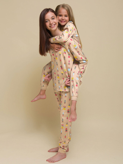 Плюс 100 к уюту с нашей милой пижамой для девочки! Модель в стиле "хюгге" выполнена из 100% хлопка — оптимальный состав для детской пижамы. Ткань изделия тёплая, приятная на ощупь, превосходно пропускает воздух — кожа ребёнка дышит. Благодаря этому сон комфортный и качественный. Джемпер и брюки среднего объёма, плечо слегка спущено, рукава широкие и свободные — пижама очень удобна для сна. Широкая и мягкая резинка в поясе не перекручивается и не давит. Манжеты и отделка горловины эластичные — комплект удобно надевать и снимать. Пижама представлена в красивом бежевом цвете "овсяное молоко" — очень уютном и нежном. Комплект украшает оригинальный цветочный принт. Он непременно понравится любой девочке. Такая пижама идеальна для сна как дома, так и в детском саду — отличный подарок вашей дочке, сестрёнке или племяннице!