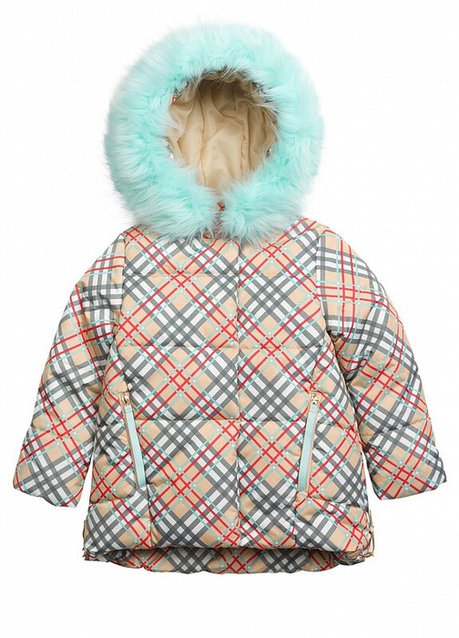 Куртка для девочек. Рекомендованный температурный режим: не ниже -15°С. Куртка полуприлегающего силуэта с перепадом длин. Капюшон не отстегивается. Меховая опушка съемная. Регулировка объема по низу. Карманы в рельефных швах на молнии.