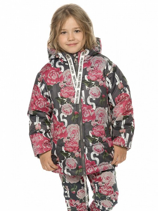 Осенняя удлиненная куртка для девочек , силуэт кокон, подчеркнутый отстрочкой на переде и спинке. Утеплитель синтепон 200гр/м2. Курточная ткань с двусторонним водоотталкивающим покрытием. Подклад из хлопкового трикотажа по стану и в капюшоне, из тонкого полиэстера в рукавах. Двухшовный неотстегивающийся капюшон, переходящий в стойку воротника. Регулировка объема капюшона и по низу изделия принтованными репсовыми лентами, продетыми в крупные люверсы. Перевод: Песня сердца. Внутренний воротник и манжеты по низу рукава из рибаны. Карманы с листочкой. Световозвращающие элементы на спинке и в боковых швах. Рекомендуемый температурный режим: не ниже -15°С.